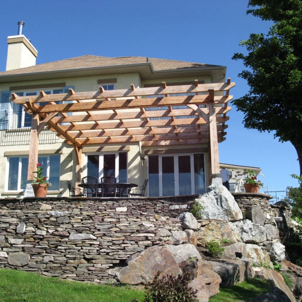 Chez Zébo.ca, nous pouvons réaliser la charpente en bois massif de votre choix avec notre technique d’assemblage de type tenons et mortaises pour tous vos projets, de la simple tonnelle jusqu'à la maison de vos rêves.