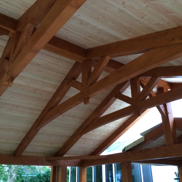 Chez Zébo.ca, nous pouvons réaliser la charpente en bois massif de votre choix avec notre technique d’assemblage de type tenons et mortaises pour tous vos projets, de la simple tonnelle jusqu'à la maison de vos rêves.
